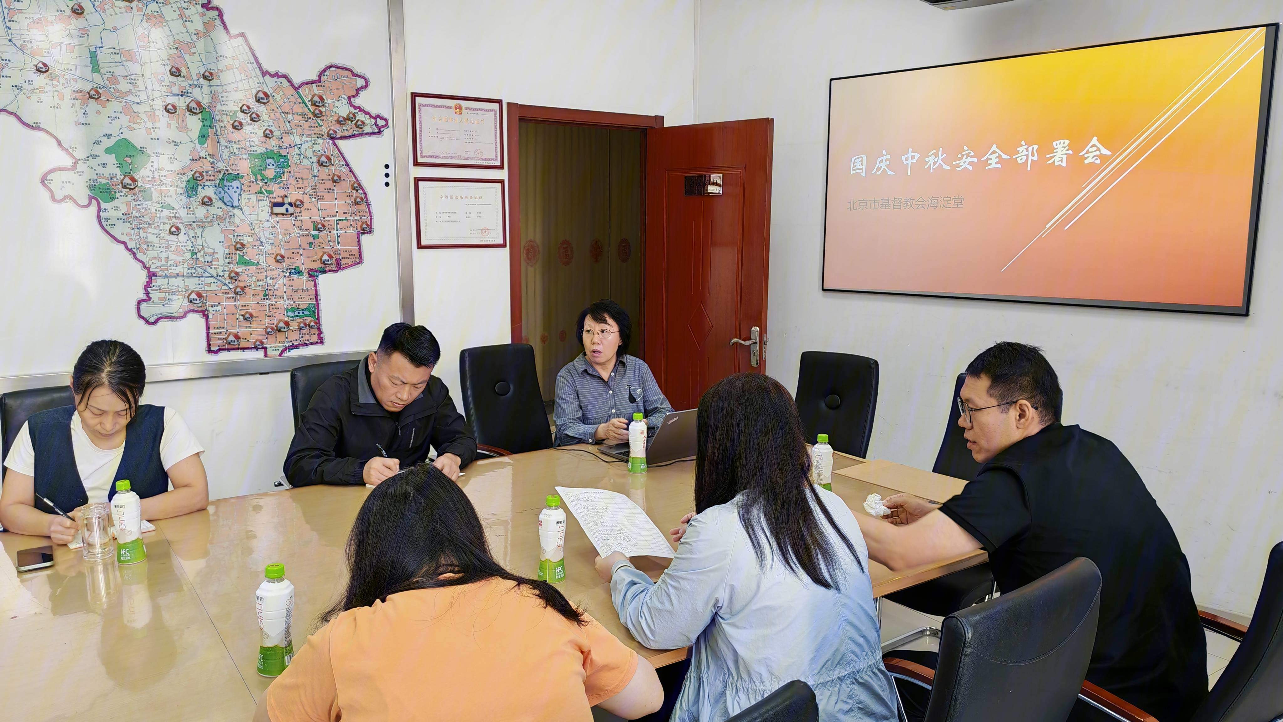 2025年9月30日上午9时,北京市基督教海淀堂安全工作部署会在三层会议室召开。会议由边文爱牧师主持,教牧同工参会。