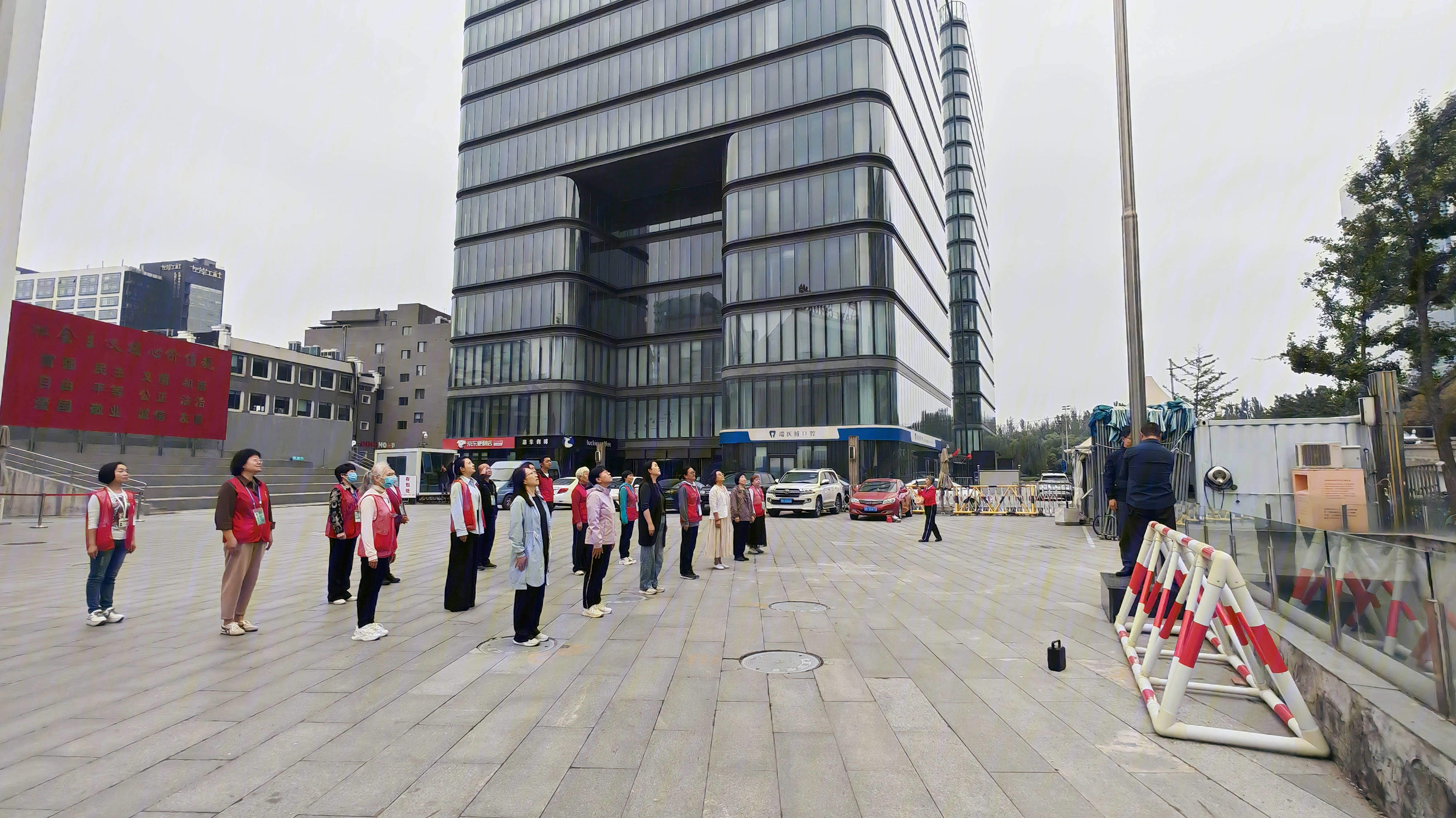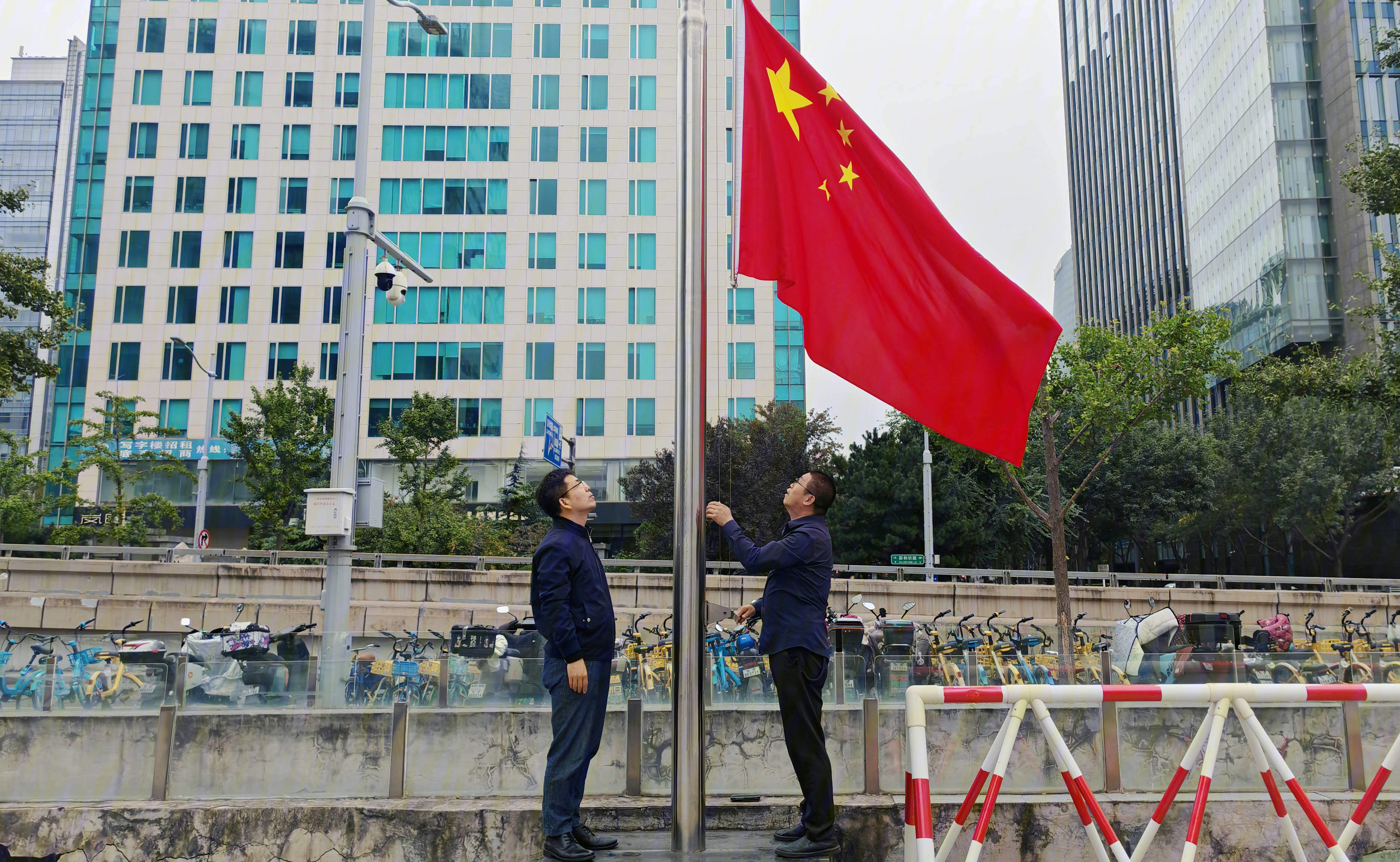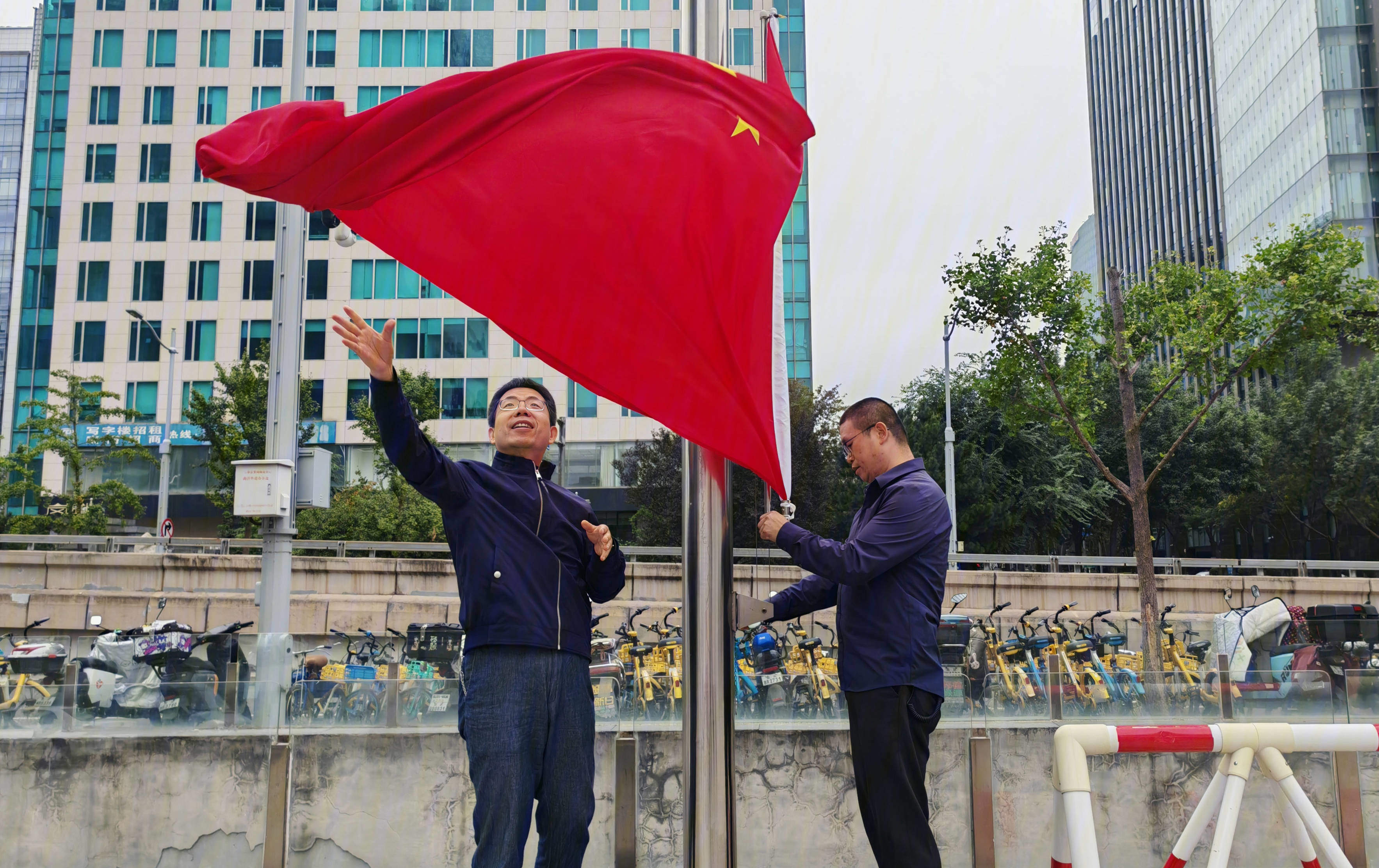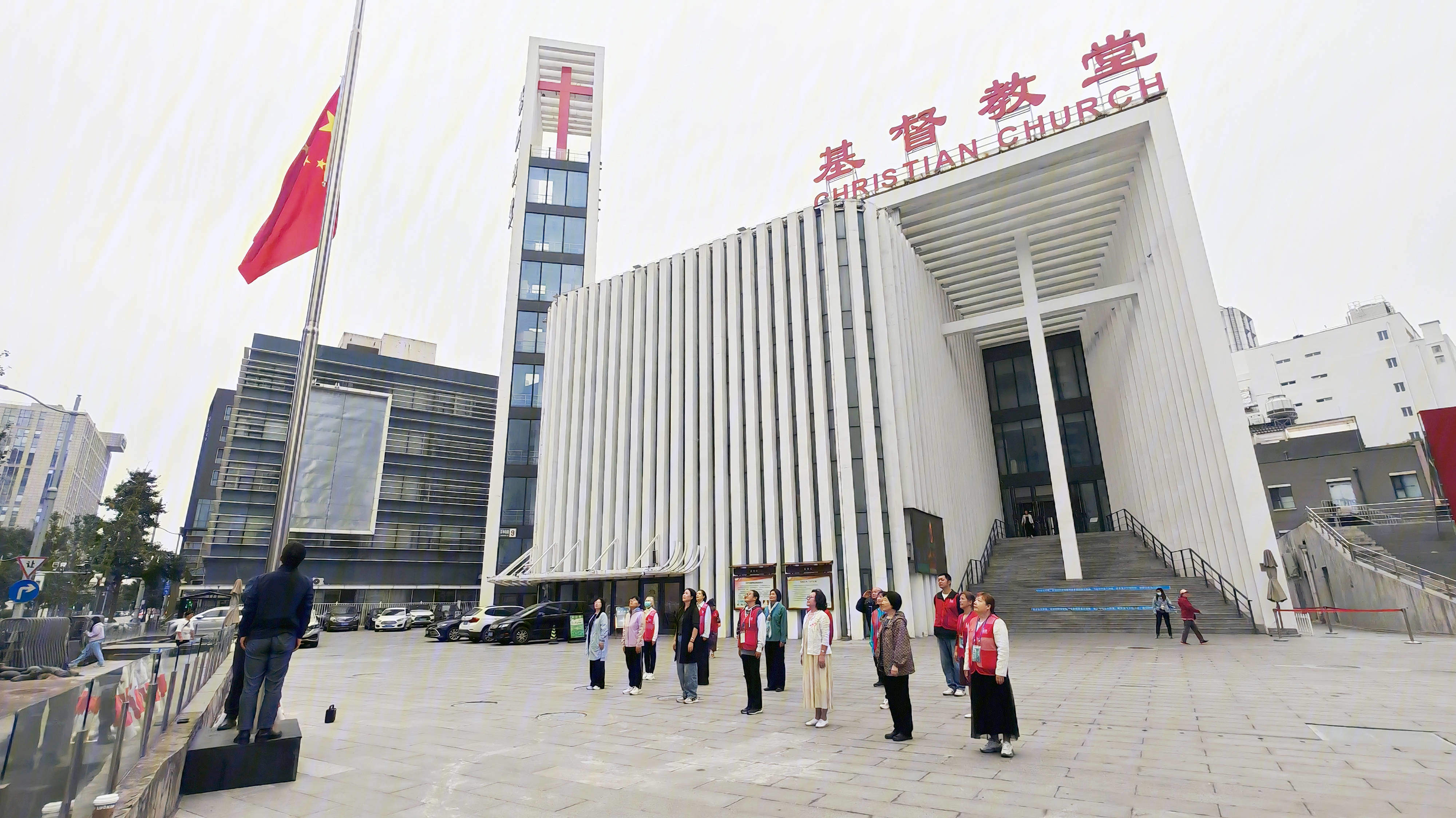2025年10月5日,正值主日清晨,金色阳光洒满北京市基督教海淀堂的广场。教堂教牧同工与骨干义工整齐列队。随着雄壮的《义勇军进行曲》旋律奏响,鲜艳的五星红旗在众人的注视下,缓缓升至旗杆顶端。仪式中,众人肃立凝视,爱国情怀在心中激荡。