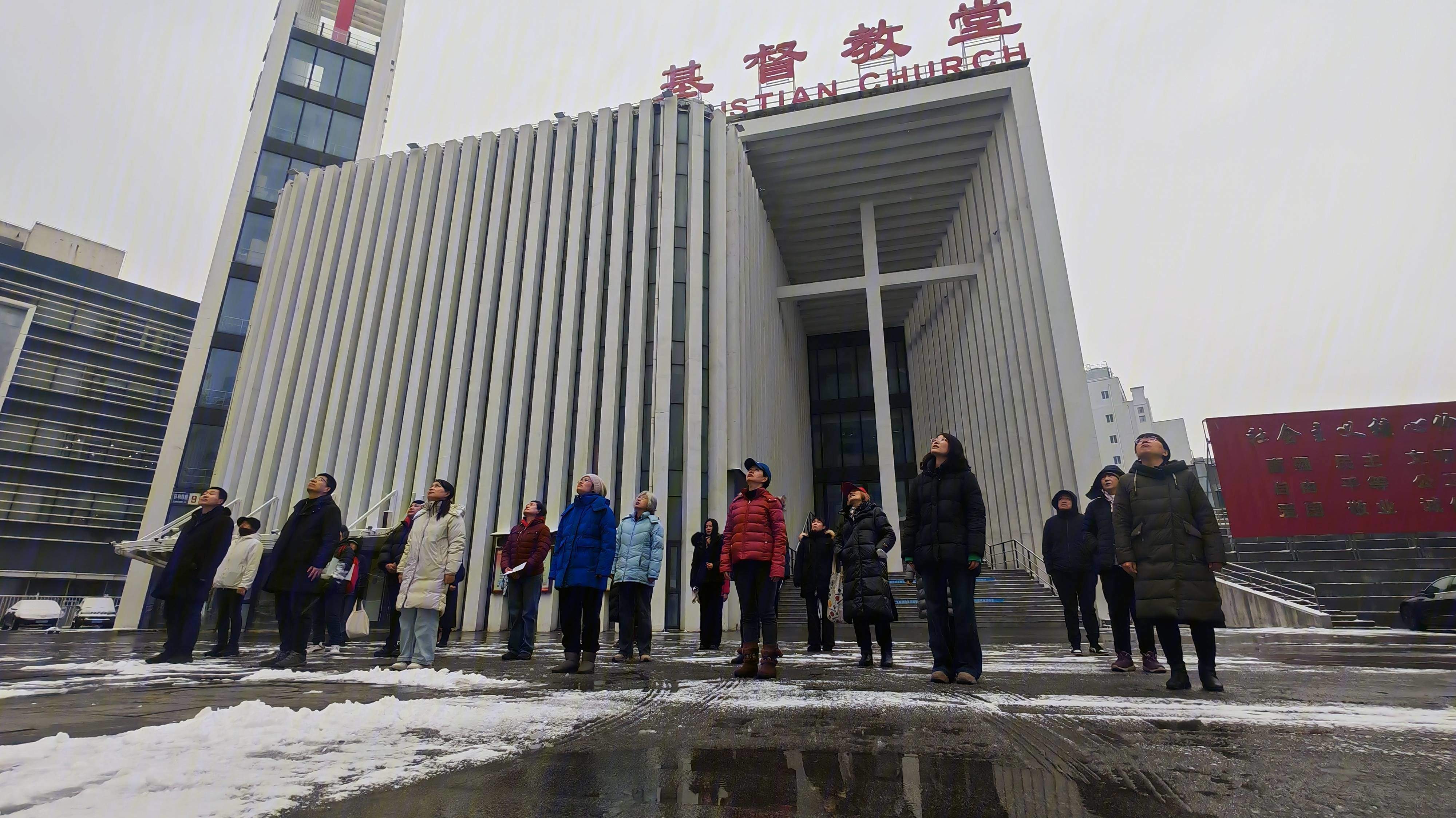2026年3月5日上午8时50分,北京市基督教海淀堂教牧同工、义工代表们齐聚教堂广场,举行庄严隆重的升旗仪式。